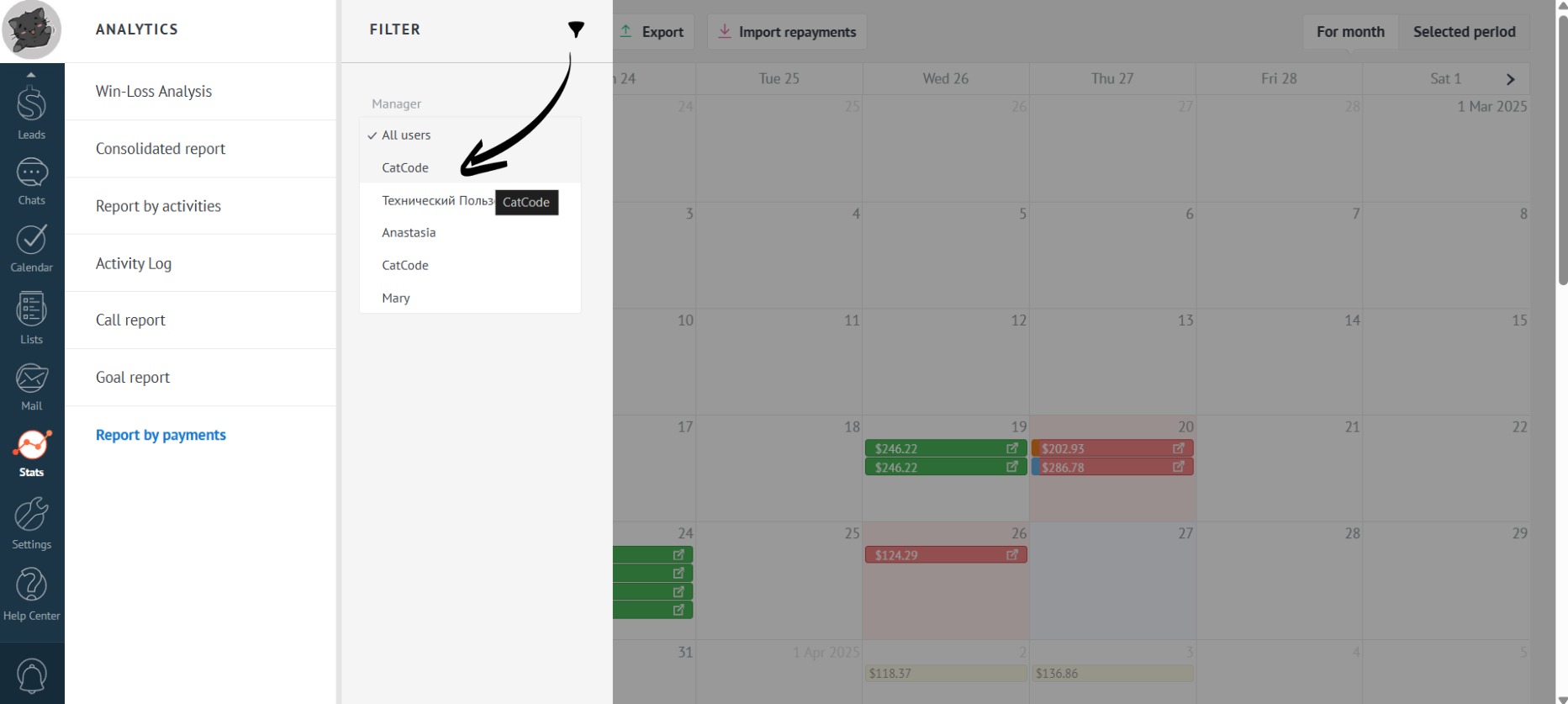 Select the employees for whom you want to export the report: