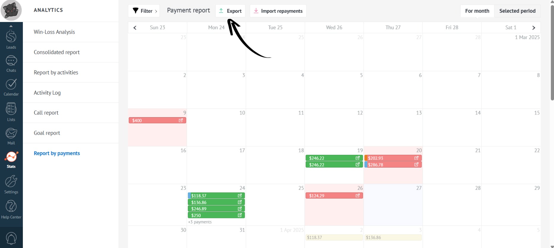 Choose the desired period for the export: