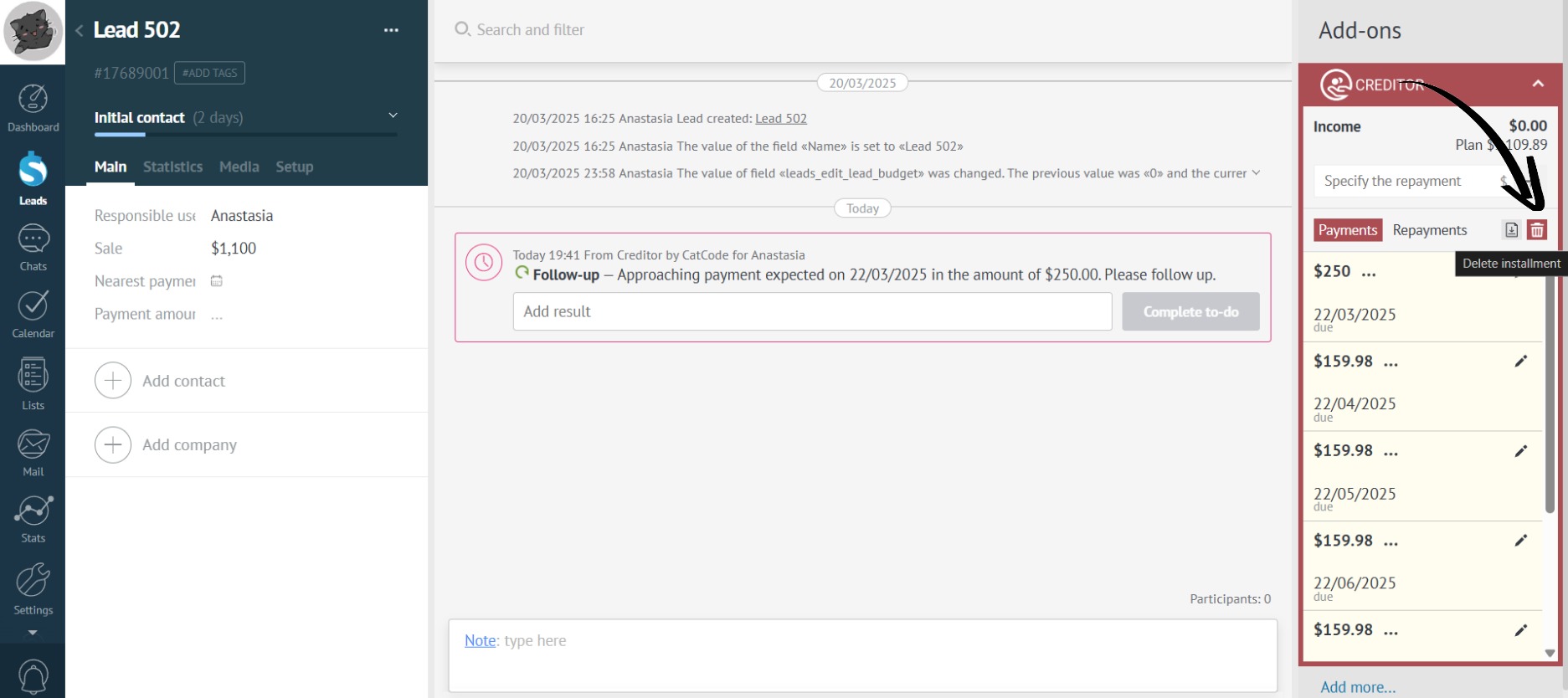 Deleting the installment is necessary in the early stages of work, when the customer is choosing a repayment scheme/approval of terms, etc.