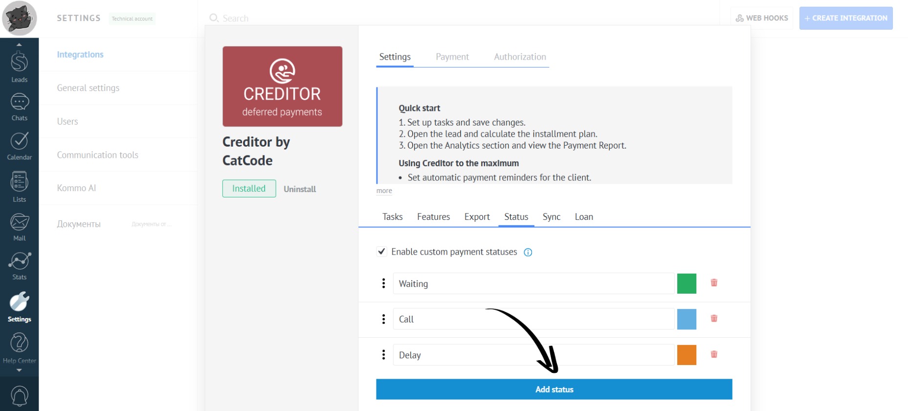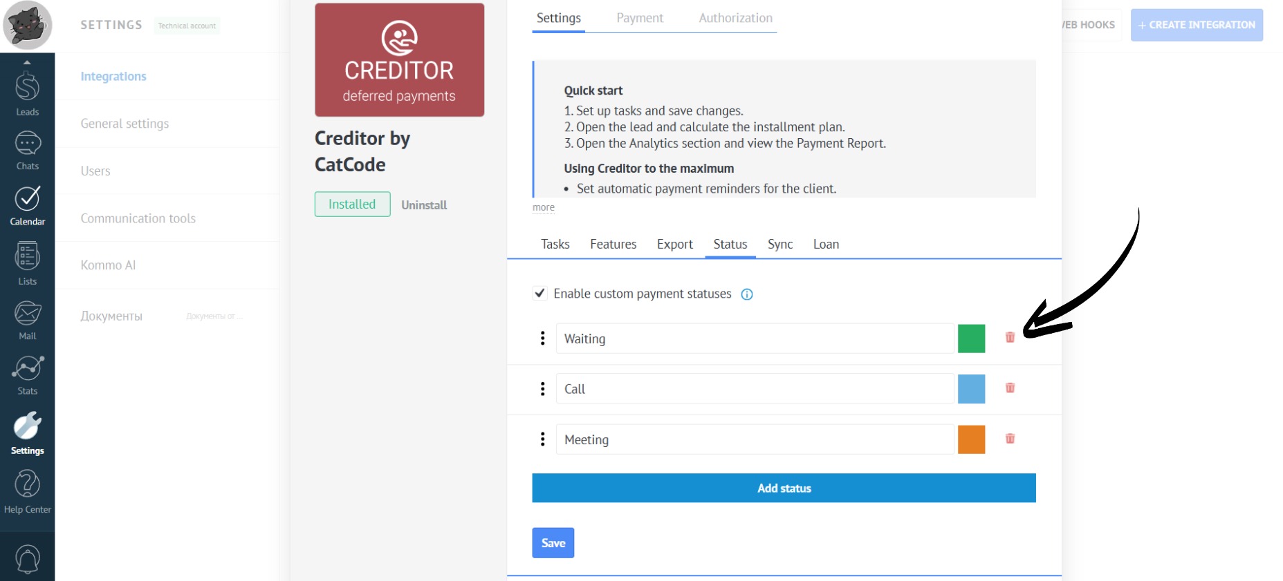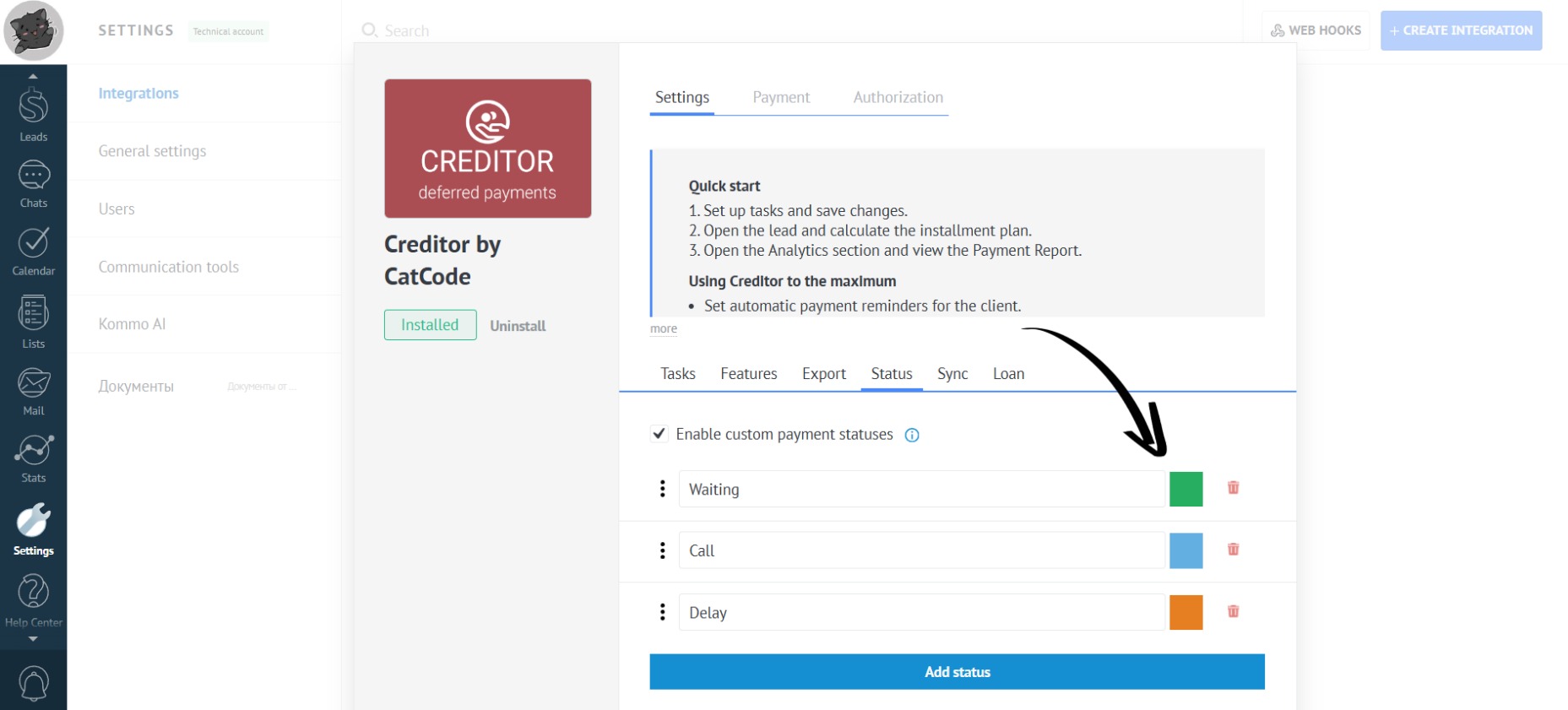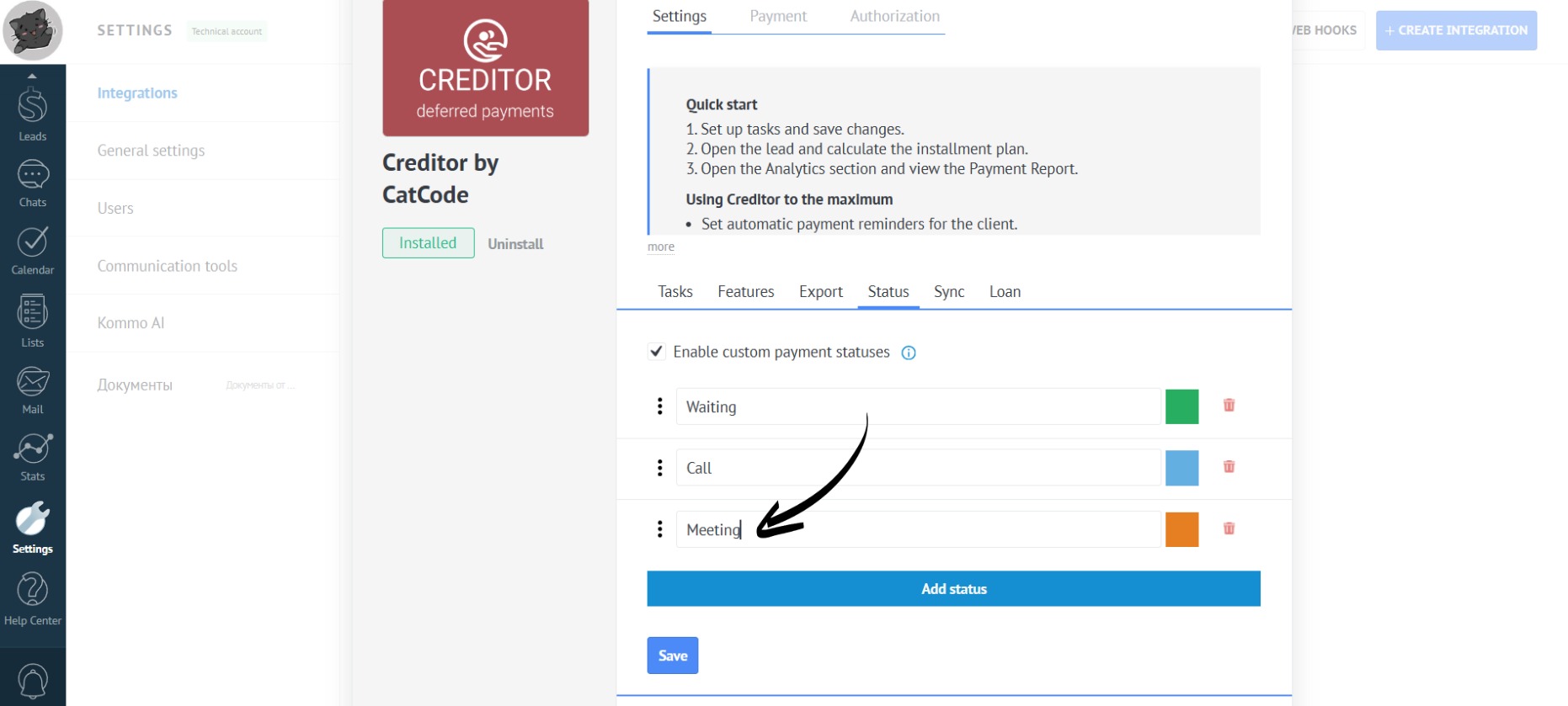 - Using payment options as separate custom statuses: indicate how the payment will be made in the status: by card, transfer, invoice, etc.