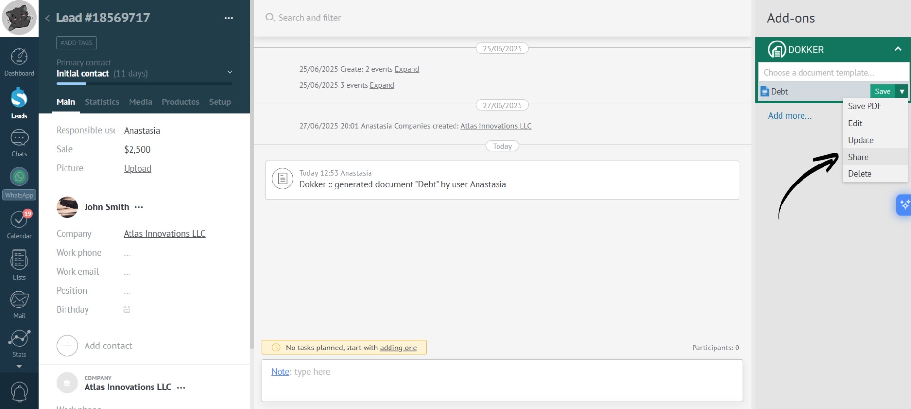 Click the “Share” button to generate a link to the generated document: