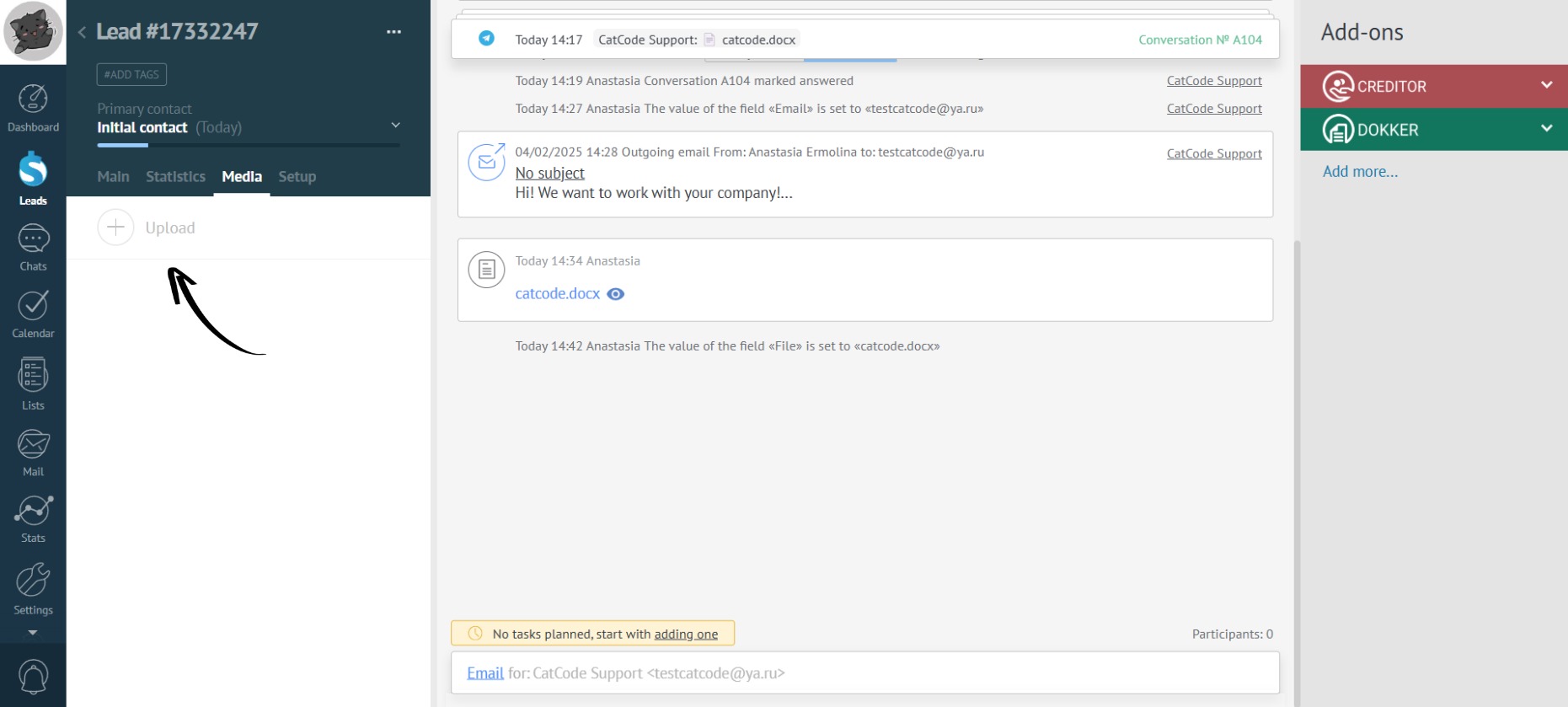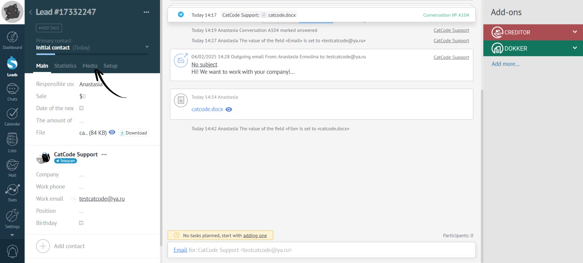 Go to the desired lead and, in the left sidebar menu, open the Media tab: