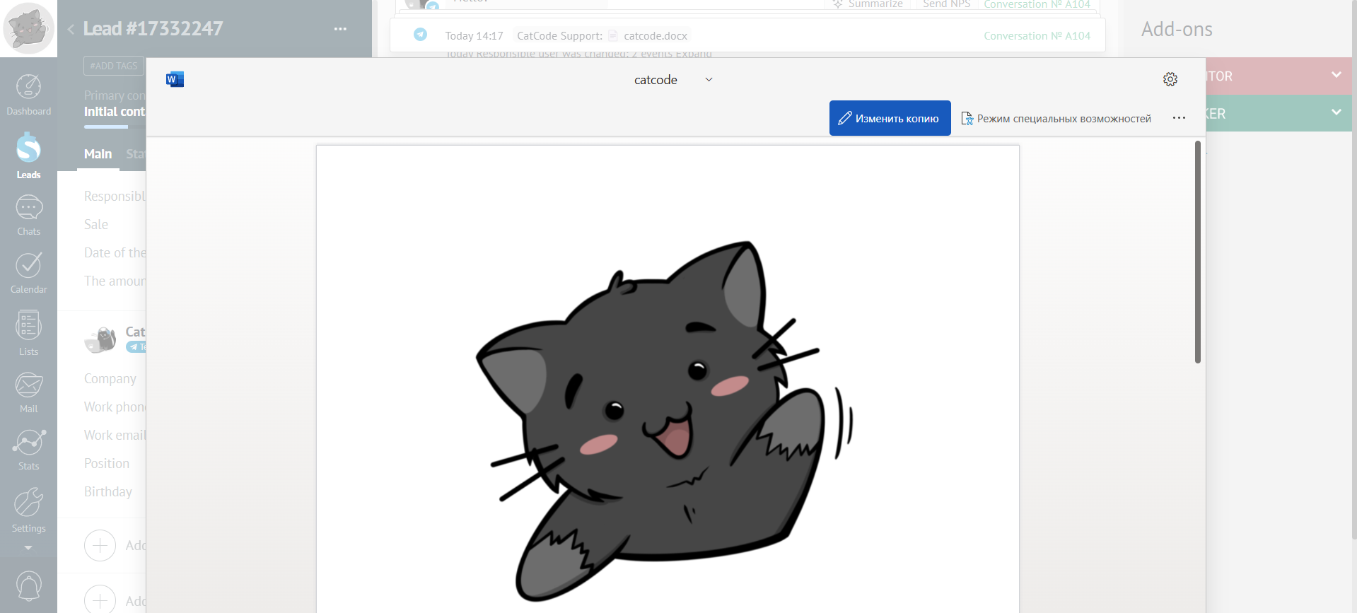 To view the document without downloading, simply click on the eye icon next to the document in the note on the card: