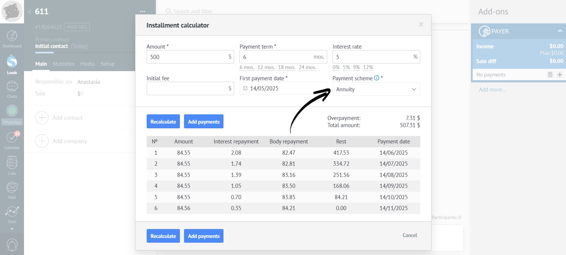 For more convenient installment management, try our Creditor app with automatic payment recalculation and support for early payment processing.