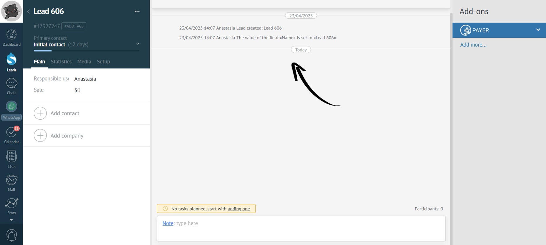 - Now, all changes to payments will be displayed in the lead:
